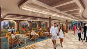 The largest stateroom with the best view on the ship, the Carnival Excel Presidential Suite features a separate living room and bedroom (each with a TV), a walk-in closet, a lighted vanity and sectional sofa. There’s also a dining area with a wet bar. You’ll find deluxe extras like a bathroom with large shower and two sinks, plus we put the toilet and an extra sink in a separate room for convenience and privacy. Enjoy your private tub on the large wraparound balcony along with plenty of loungy seating options and an al fresco dining table.