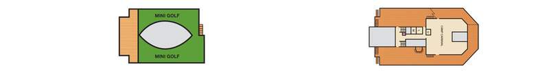Ah, imagine a perfect day out on the links, the golfer's zen of the ball, the hole and nothing in between but well-manicured fairway... plus one cactus, a treasure chest... and wait, is that a windmill in the way? Just who designed this course anyway? Whoever it was, they had one thing in mind — maximum fun for mini-golfers, big and small! That's precisely why you'll find a course on every Carnival® ship, where you can hit the holes and take in everything you’d expect, like the sights and the sounds... plus the seagulls.