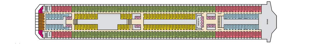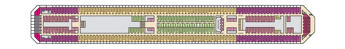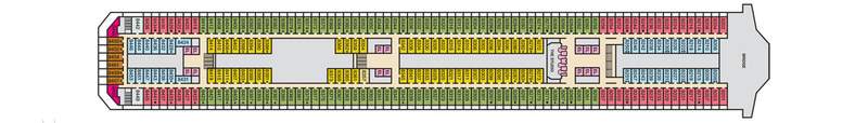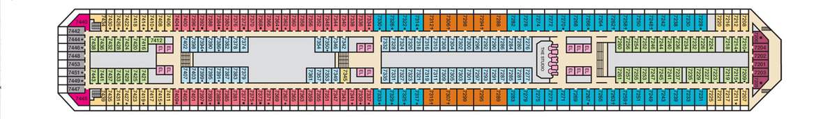 These staterooms are great for a pair of cruisers on a budget, creatively maximizing space with a different layout — featuring one Twin bed, and either an upper Pullman or sofa bed.