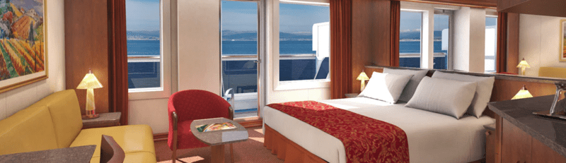 This is the best room you can get… without bunking up with the guy himself. A Captain’s Suite aboard Carnival Conquest features tons of indoor space, and a huge balcony when you need a little more. Back inside you’ll find a king-size bed, two full bathrooms (one with whirlpool tub), plus a separate living room that sleeps another three. And VIP check-in? Naturally.