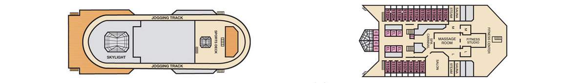 These staterooms are great for a pair of cruisers on a budget, creatively maximizing space with a different layout — one Twin bed, and either an upper Pullman or sofa bed, plus an added touch: round windows provide a view of the ocean.