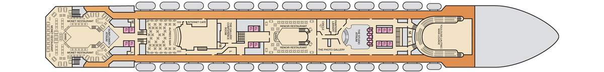 Your picture window gives you a view beyond your stateroom, to the observation deck outside, including a great sky view. (Note: view will be partially obstructed.)