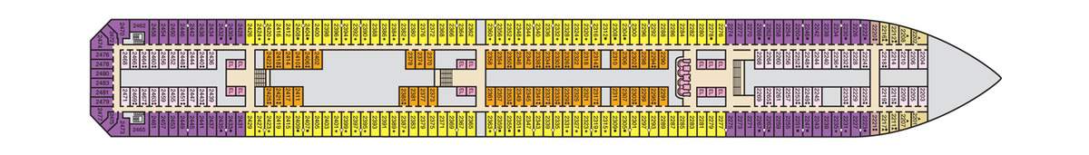 Launch year | Language | Gross tonnage | Length | Width | Currency | Speed | Capacity | Crew count | Deck count | Cabin count | Wheelchair cabin count | Electrical plugs |