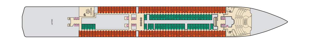 Launch year | Language | Gross tonnage | Length | Width | Currency | Speed | Capacity | Crew count | Deck count | Cabin count | Wheelchair cabin count | Electrical plugs |
