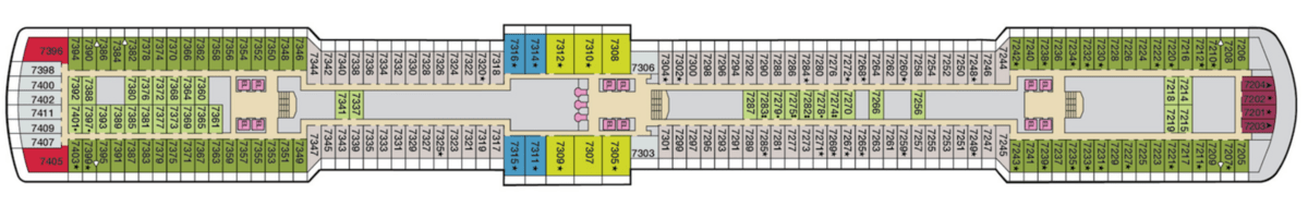 Your picture window gives you a view beyond your stateroom, to the observation deck outside, including a great sky view. (Note: view will be partially obstructed.)