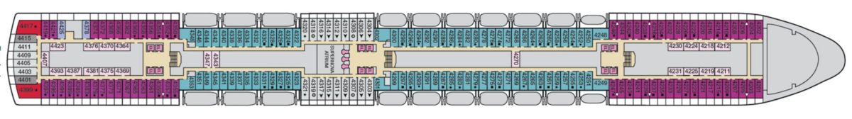 Launch year | Language | Gross tonnage | Length | Width | Currency | Speed | Capacity | Crew count | Deck count | Cabin count | Wheelchair cabin count | Electrical plugs |