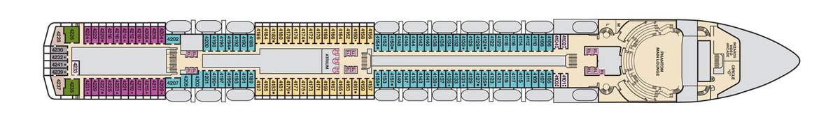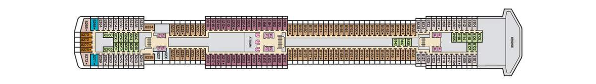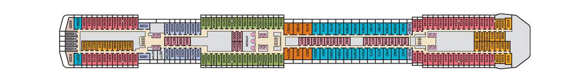 Launch year | Language | Gross tonnage | Length | Width | Currency | Speed | Capacity | Crew count | Deck count | Cabin count | Wheelchair cabin count | Electrical plugs |