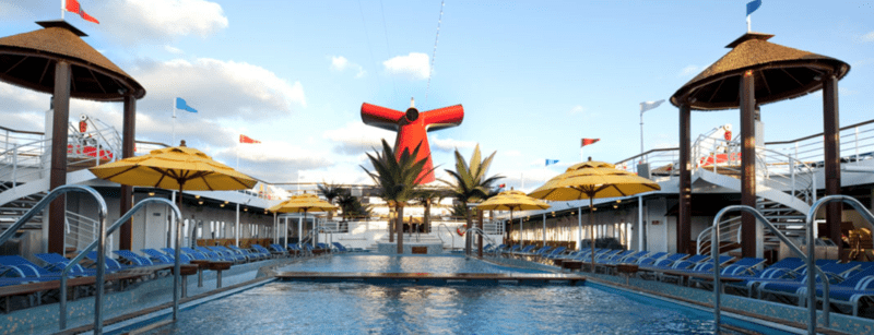 POOL DAY! Whether today's the day for a bit of a dip, a dash of splash or even some swimming — or just a serious poolside lounging session — your Carnival cruise has the just pool for you. In fact, pools are so important to a great cruise that they designed many of our ships to have two of them. At an aft pool you'll catch a breeze, plus a sea view featuring the ship's wake, while midship pools have an grand view of a different kind: the big screen's right there for the viewing. And no matter which you find yourself chilling in, the sunbeams are yours for the soaking.