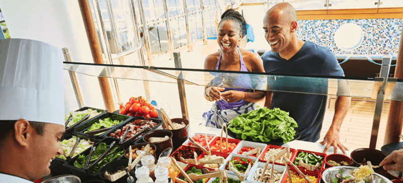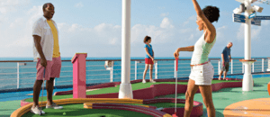 If you’re hungry, the deli is that way! But whether you’re a pickleball novice or kind of a pro, we’re serving up a spot on-board where you can meet up for some friendly competition. In this scaled-down tennis-like game — pop! — oh hey, that’s just the way it sounds when someone hits the ball, you’ll get used to it. This game’s history goes way back to the 60s but it’s gotten pretty popular lately, and best of all your cruise is a great time to learn the simple rules and take a whack at this game — pop! — yep, like they just did. So if you’ve ever played tennis, ping-pong or badminton, you might already have the skills. And even if you haven’t, just — pop! — pop on over for a game.