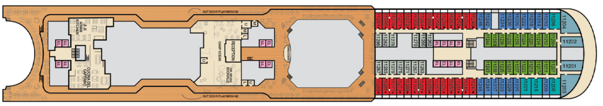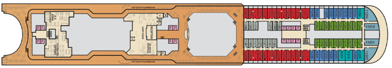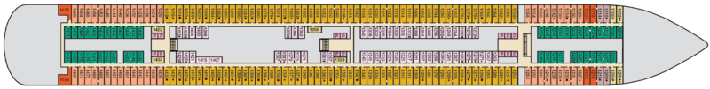Launch year | Language | Gross tonnage | Length | Width | Currency | Speed | Capacity | Crew count | Deck count | Cabin count | Wheelchair cabin count | Electrical plugs |