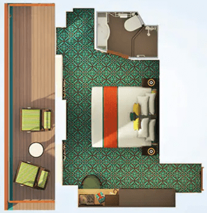 There are amenities by the handful in this Havana-flavored stateroom, but the one that'll excite you most of all is likely to be this: Havana Cabana staterooms come with an outdoor patio — complete with your own loungy deck chairs — right outside your room. They also feature Cuba-inspired decor, exclusive access to Havana Pool area and loads of sunlight with floor-to-ceiling window, but like we said... your very own deck chairs! (All Havana stateroom guests must be 12 or older.)