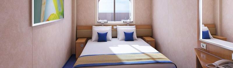 These staterooms are great for a pair of cruisers on a budget, creatively maximising space with a different layout — one Twin bed, and either an upper Pullman or sofa bed, plus an added touch: round windows provide a view of the ocean.