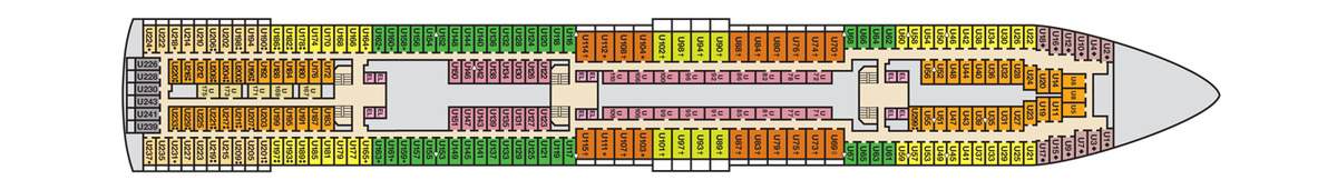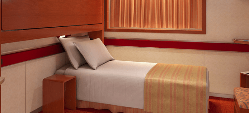 These staterooms are great for a pair of cruisers on a budget, creatively maximizing space with a different layout — featuring one Twin bed, and either an upper Pullman or sofa bed.