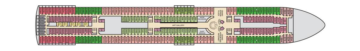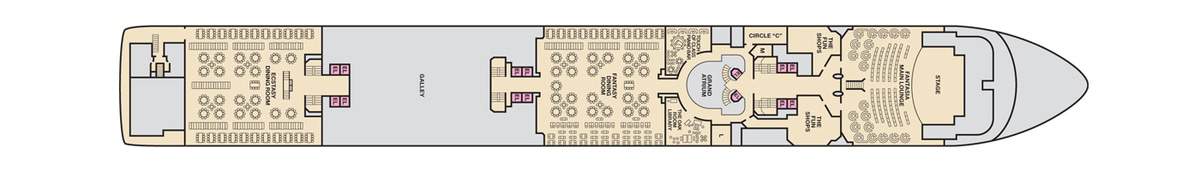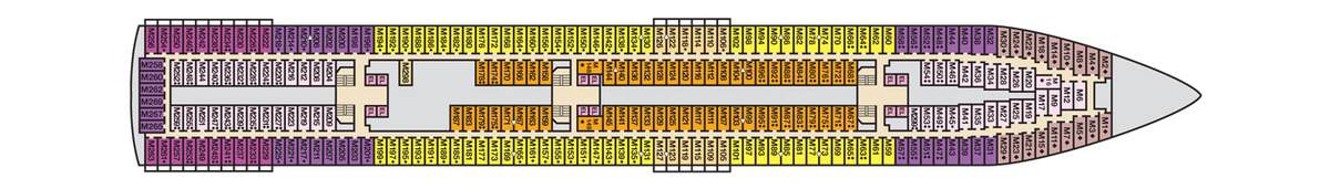 Launch year | Refit year | Language | Gross tonnage | Length | Width | Currency | Speed | Capacity | Crew count | Deck count | Cabin count | Wheelchair cabin count | Electrical plugs |