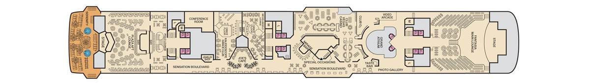 The atrium is not only where you’ll find the grand staircase and wonder at the scenic high ceiling — it’s also the heart of any Carnival ship. Day or night, you can get your questions answered at guest services, plan some fun at the shore excursion desk, enjoy music that helps set the atmosphere… and even see what’s good at the full bar and happening on the dance floor.