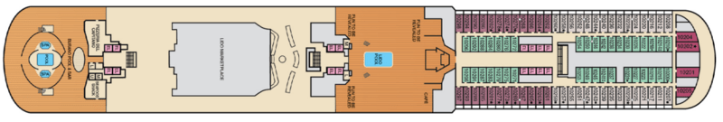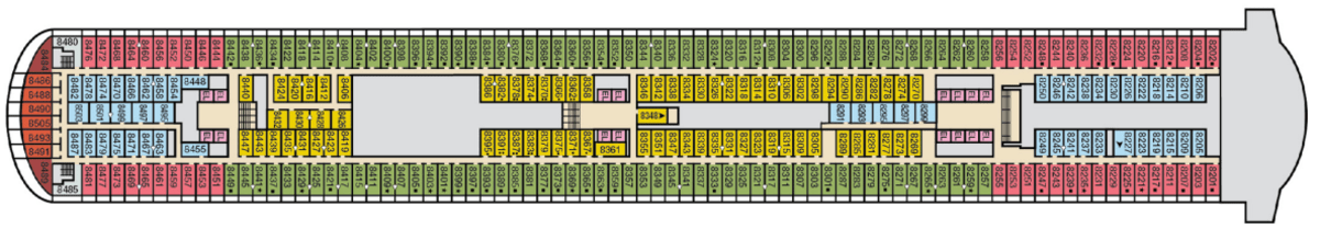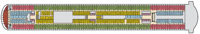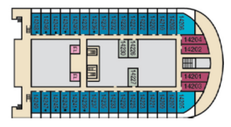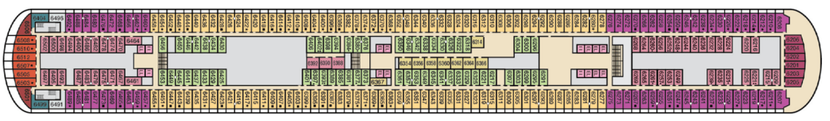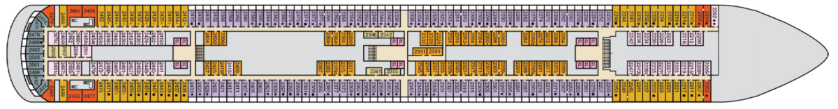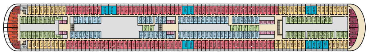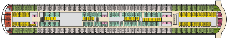 These staterooms are great for a pair of cruisers on a budget, creatively maximizing space with a different layout — featuring one Twin bed and an upper Pullman.