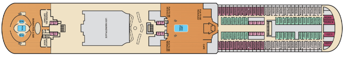 A Terrazza Cabana stateroom gets you real estate on one of the most desirable addresses on the ship: your very own lounging patio, complete with deck chairs and a hammock. Plus, you'll have easy access to the exclusive Terrazza Carnevale area. (All Terrazza stateroom guests must be 12 or older.)