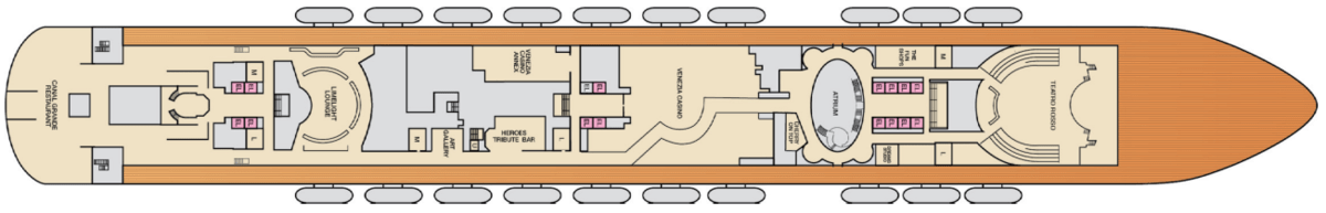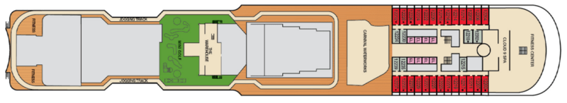 There’s also a lot of the classic Carnival fun that repeat cruisers ( hey there!) know and love. Cruise food done deliciously comes from spots like Bonsai Sushi™, Fahrenheit 555 Steakhouse™, Lido Marketplace, and Bonsai Teppanyaki™. Places to gather and celebrate life, vacation or whatever include Piano Bar 88, Serenity Bar and Heroes Tribute™ Bar. Or celebrate relaxation at Cloud 9 Spa™ and Serenity Adult-Only Retreat™. For the kids, there’s spaces made just for their age like Camp Ocean™, Circle “C”® and Club O2®. And outdoors, get ready for a very splashy WaterWorks™, SportSquare™ featuring a ropes course, jogging track, mini golf and outdoor fitness center.