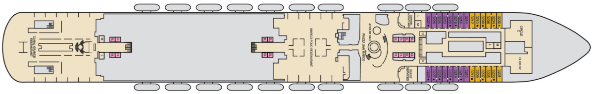 A cozy, classic stateroom decked out with Italian flair… plus amenities like exclusive access to the outdoor Terrazza Carnevale area. (All Terrazza stateroom guests must be 12 or older.)