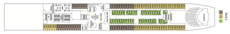 | Launch year | Refit year | Language | Gross tonnage | Length | Width | Currency | Speed | Capacity | Crew count | Deck count | Cabin count | Large cabin count | Wheelchair cabin count | Electrical plugs |