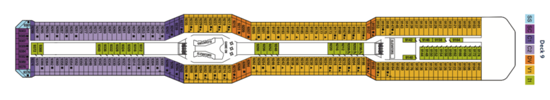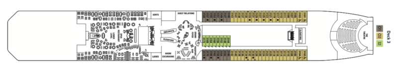 Launch year | Refit year | Language | Gross tonnage | Length | Width | Currency | Speed | Capacity | Crew count | Deck count | Cabin count | Large cabin count | Wheelchair cabin count | Electrical plugs |