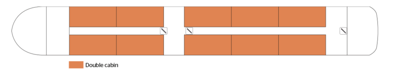 | Launch year | Language | Currency | Capacity | Crew count | Deck count | Cabin count | Large cabin count | Wheelchair cabin count | Electrical plugs |