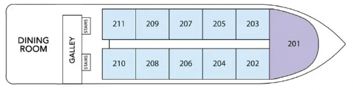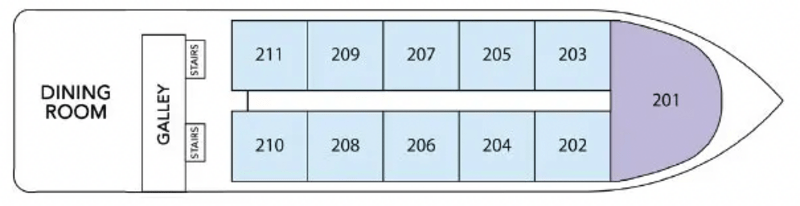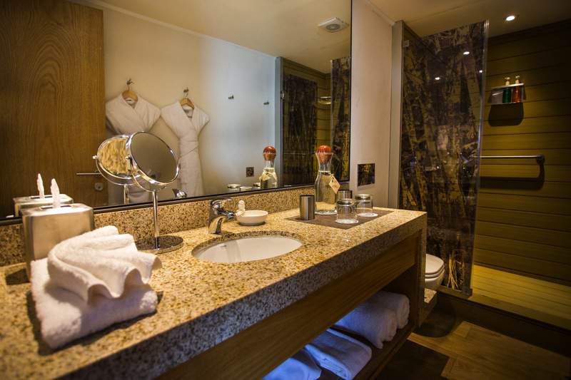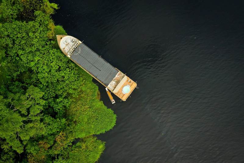 This spacious and indulgent ship boasts an intimate atmosphere with only 22 suites, allowing a maximum of 44 guests on board. Each of these luxury suites features en-suite sitting areas, individual air conditioning, polished and sustainable wood flooring, and floor-to-ceiling panoramic windows that frame the Amazon Jungle in the backdrop.