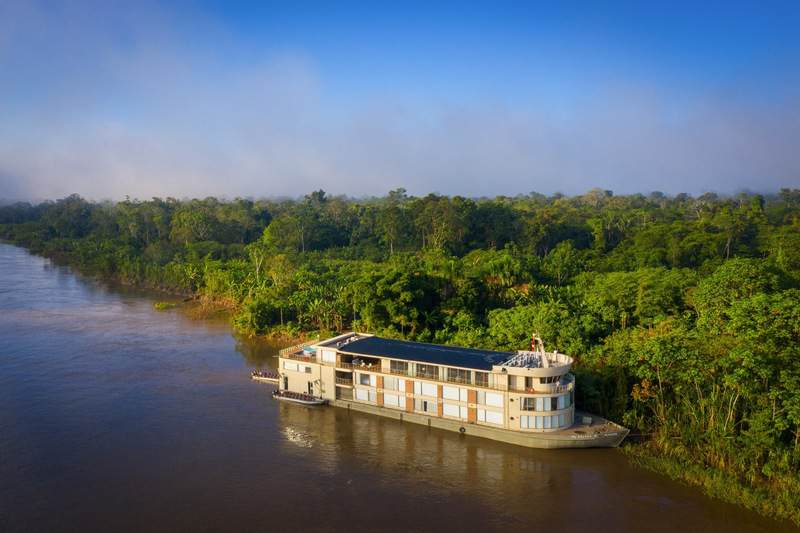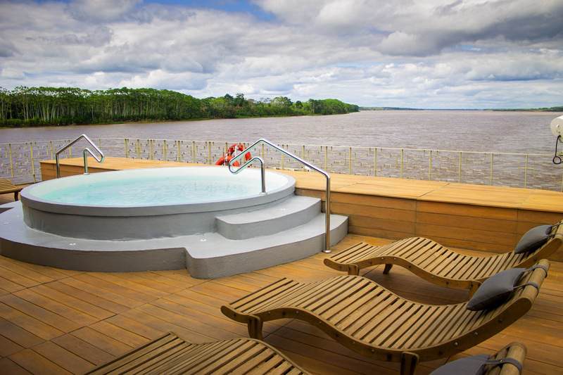 Tailor-made for cruising the Amazon, the Delfin III can accommodate 44 cruise ship guests in four different styles of suites featuring floor-to-ceiling panoramic windows. Cruise along the Amazon on this stylish luxury ship, and enjoy views of this vast, atmospheric rainforest from the comfort of your air-conditioned suite. Perfectly sized for an intimate cruise, the Delfin III provides an extremely comfortable indoor and outdoor lounge, outdoor plunge pool, exercise room, spa, dining room and sleeping accommodation.