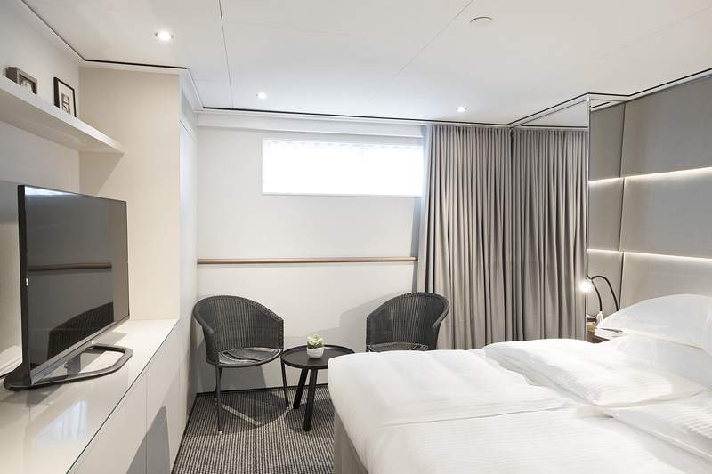 All suites and staterooms boast a wealth of sumptuous features, from luxurious toiletries and a revitalising shower in your spacious en-suite bathroom, to a queen size* or twin hotel-style bed, draped with luxurious linens. Not forgetting, a flat screen HDTV and infotainment system, free Wi-Fi to keep you connected with loved ones, and a bottle of water, replenished daily. We also provide trekking poles to assist on guided walking tours and hikes.