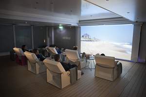At the back of the Horizon Deck you can enjoy the peaceful surrounds of our on-board heated pool, where you will have ample opportunity to go for a dip during the day. On selected evenings, this space seamlessly transforms into a cinema where we will play the latest blockbusters and timeless classics for you to enjoy.