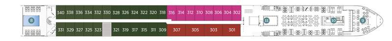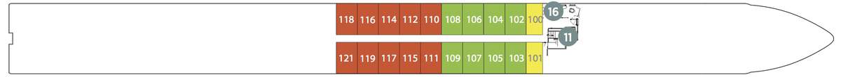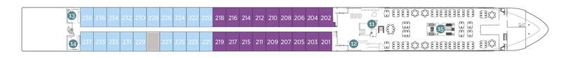 Launch year | Language | Gross tonnage | Length | Width | Currency | Speed | Capacity | Crew count | Deck count | Cabin count | Large cabin count | Wheelchair cabin count | Electrical plugs |