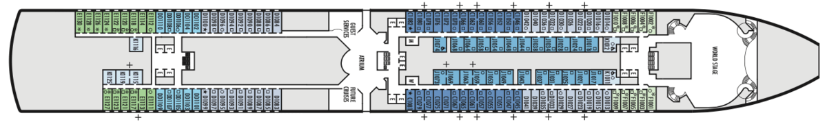 The Showroom, located on decks 1, 2 and 3, is the ship's theatre with 2 shows nightly timed for early and late dining.