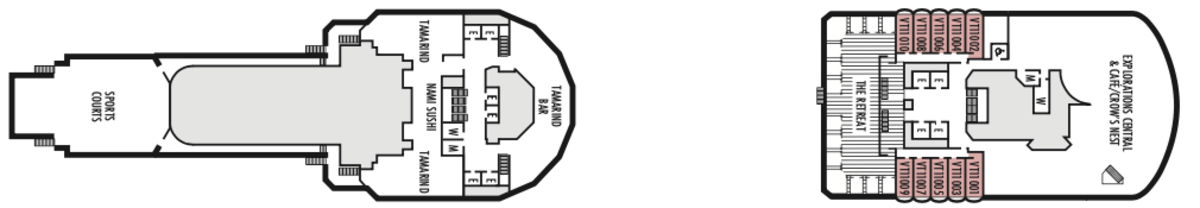The Crow's Nest, located on the Deck 11, features a small stage, dance floor and bar and in the evening becomes a nightclub.