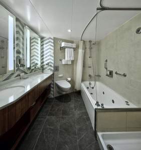 Generously proportioned and filled with light, these elegant suites include a living room, dining room, pantry with microwave and refrigerator, and floor-to-ceiling windows overlooking a private verandah with whirlpool. The bedroom features a king-size bed—our Signature Mariner's Dream™ bed with plush Euro-Top mattresses, plus a separate dressing room and the bath includes an oversize whirlpool bath and shower as well as an additional shower stall. There's also a sofa bed, suitable for two people, and a guest toilet. Amenities include a private stereo system, use of the exclusive Neptune Lounge, private concierge and an array of complimentary services.