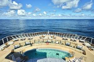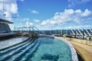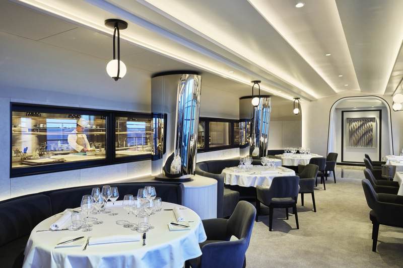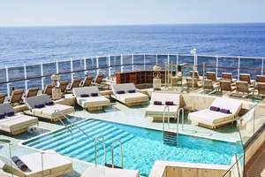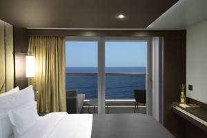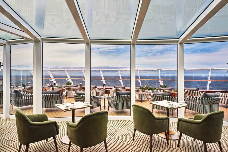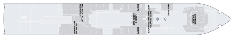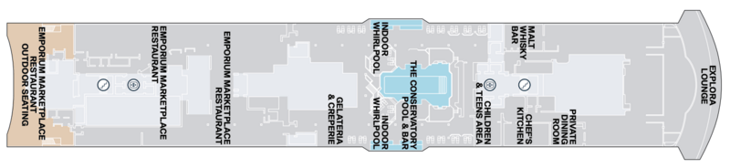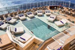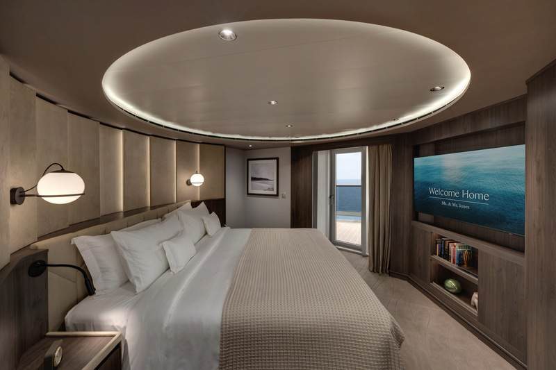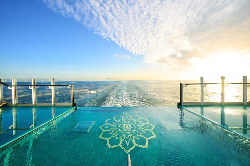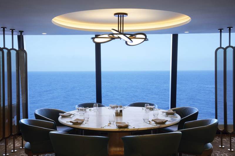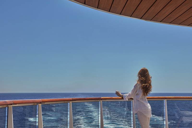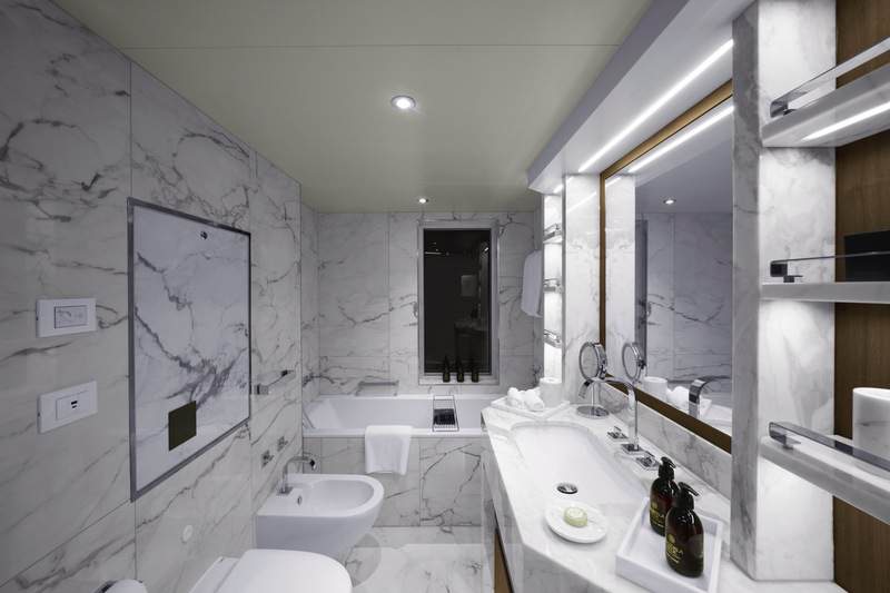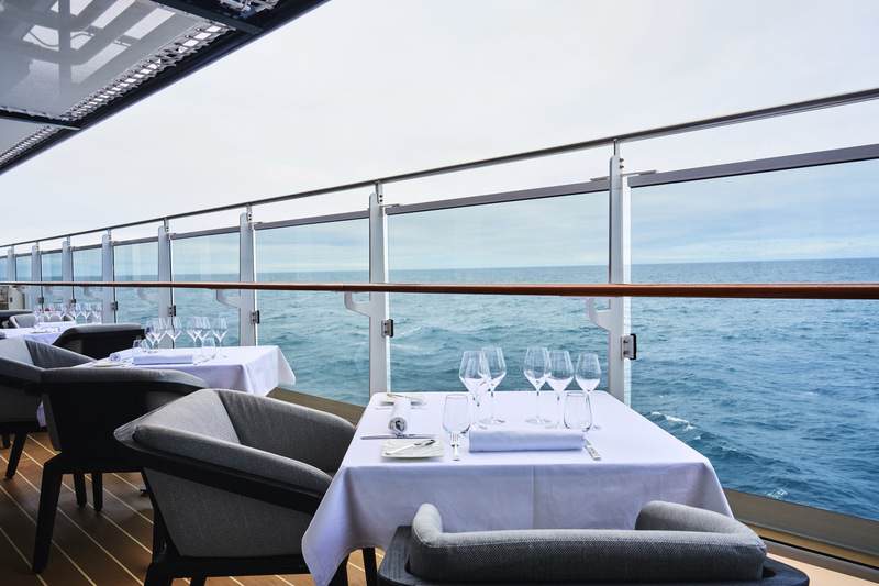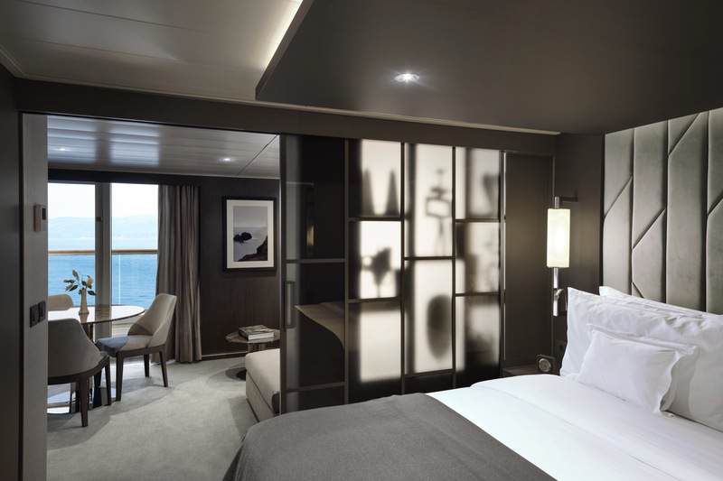 - Panoramic ocean-front terrace covering the full ship’s width, with a private outdoor spacious whirlpool, day beds, a dining table, lounge area, shower and sun loungers
