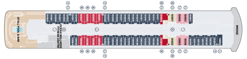 - RUNNING TRACK: Encircling the ship is a 360º track where runners can enjoy commanding ocean views while they do laps.