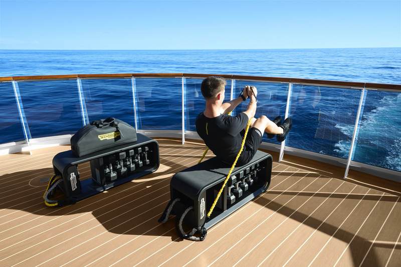 On the outdoor deck, guests can train in the open air, with direct ocean views. The Open Air Fitness area provides guests with the latest fitness equipment such as: