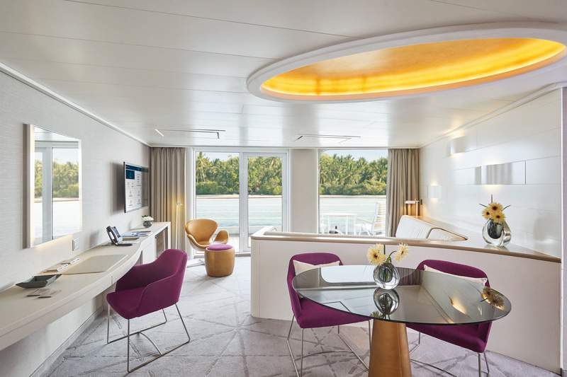 In the cabins and suites, curved lines, natural colours and premium materials come together in a harmonious room concept that promises – and delivers – pure relaxation.