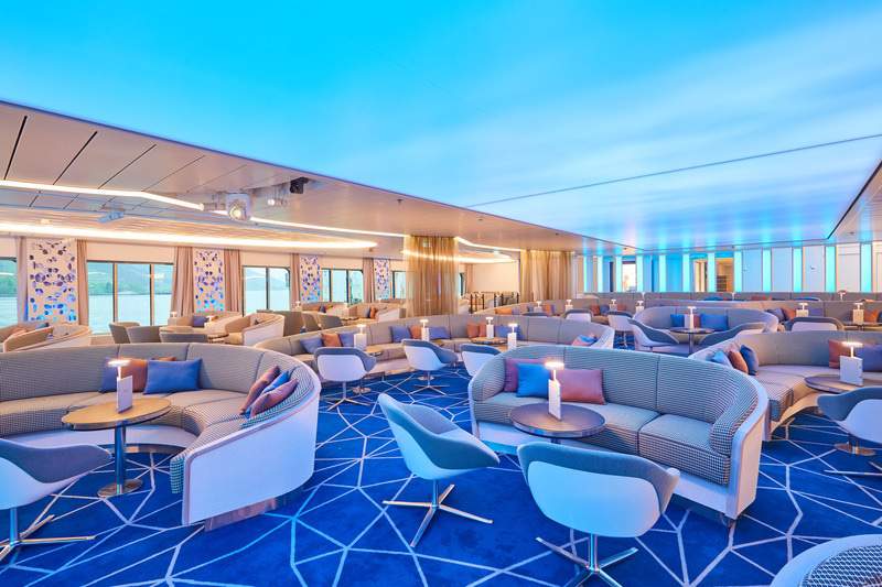 Further natural spectacles under an open sky will also leave you speechless: stroll the spacious decks and feel the stars almost within reach – the terraced Observation Deck with a panoramic view is but one place to fulfil your dream. You can also quench your thirst for adventure in the comfortable surroundings of the Observation Lounge. The large full-glass windows provide a 180-degree view of the moon and sea while you reflect on your unforgettable travel days over a glass of wine.