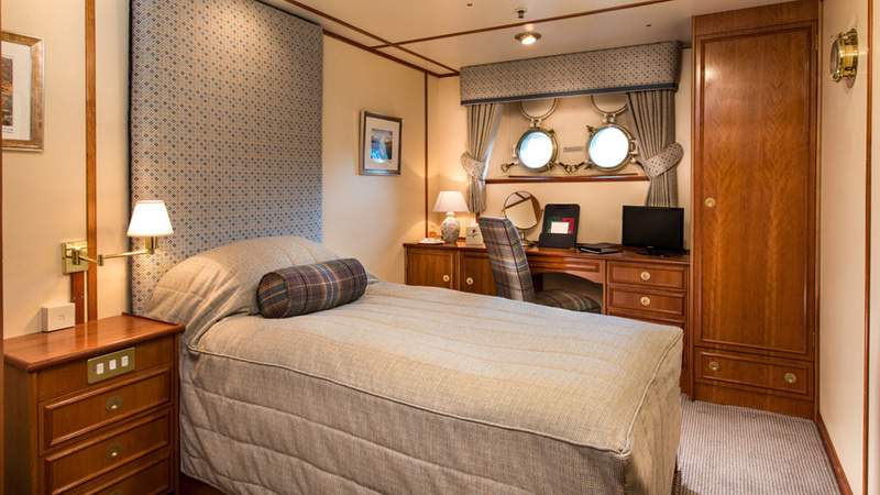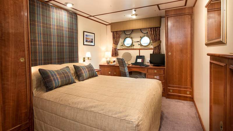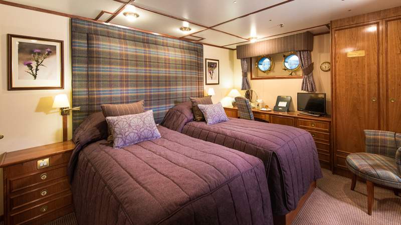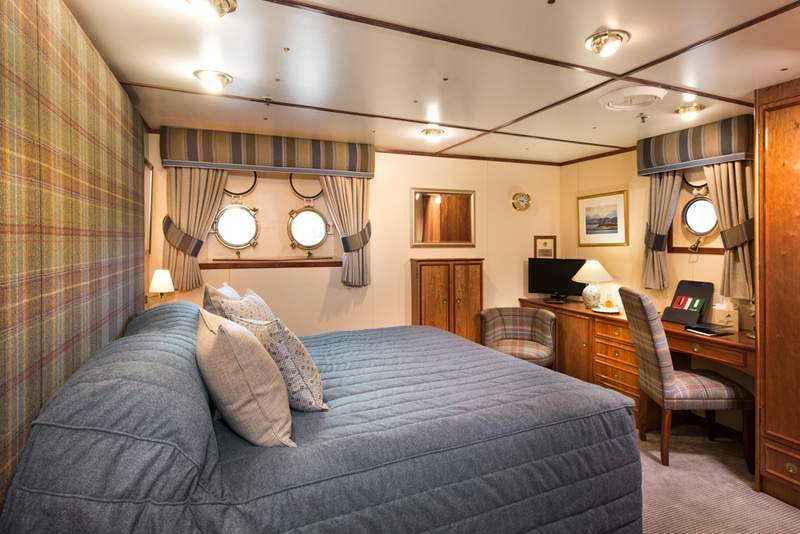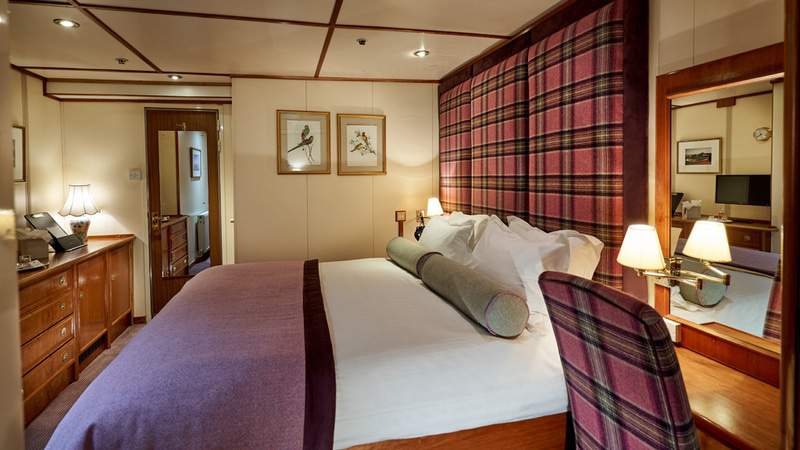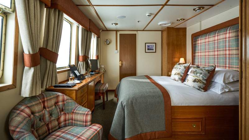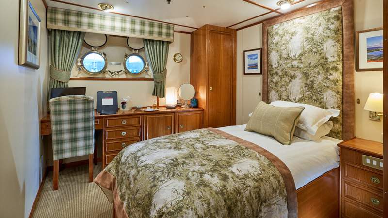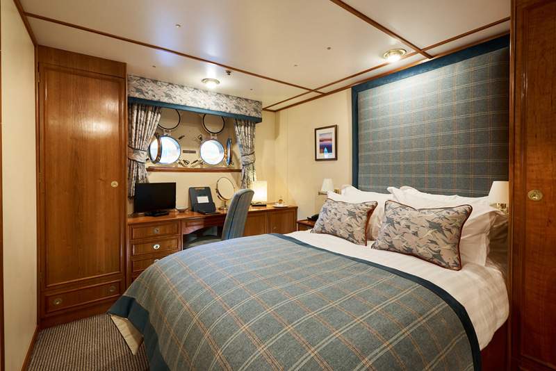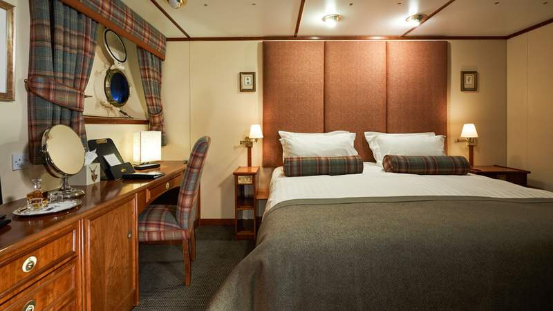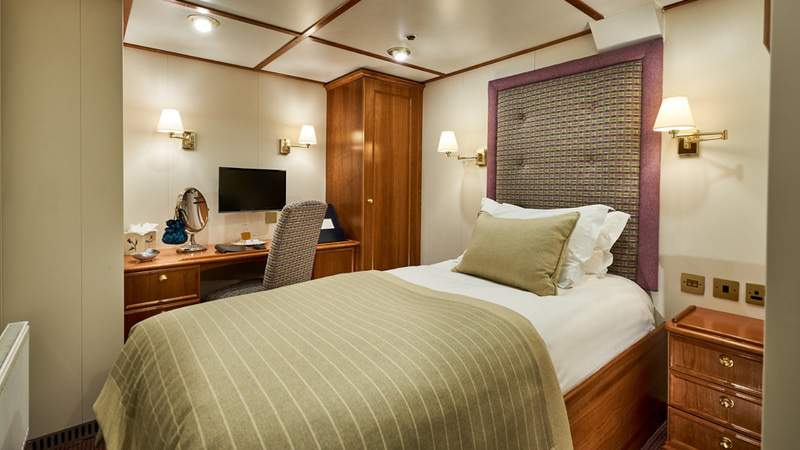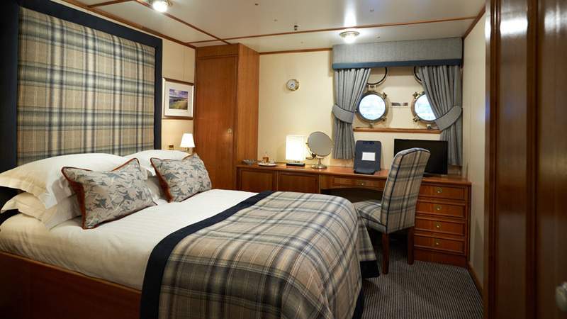 Elegantly decorated and furnished, Hebridean Princess cabins are individually designed to make the most of the available space. Poetically named after Scottish isles, castles, lochs and sounds, they are amongst the most spacious for vessels of her size.