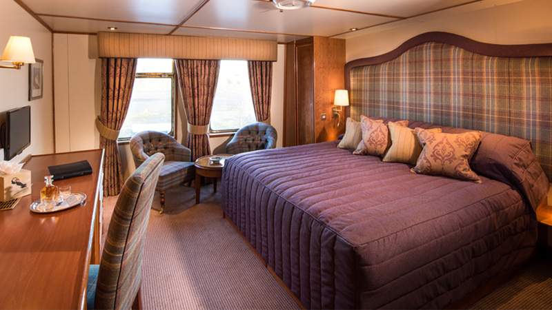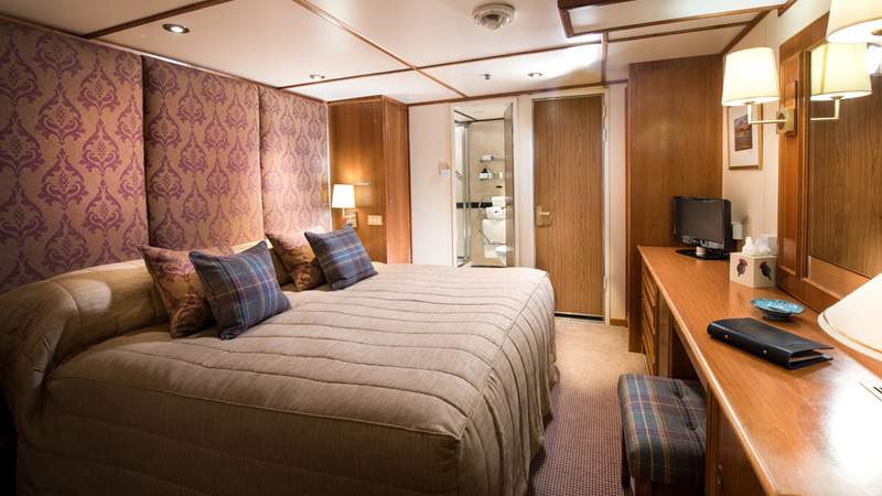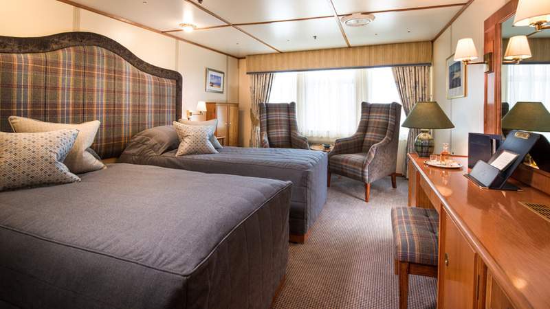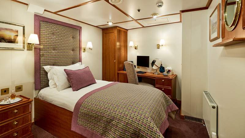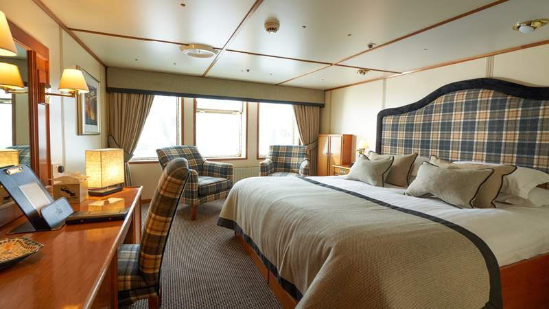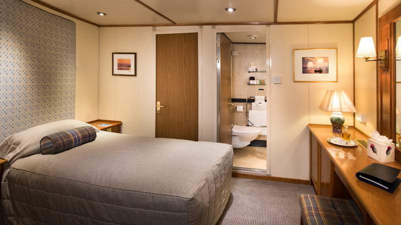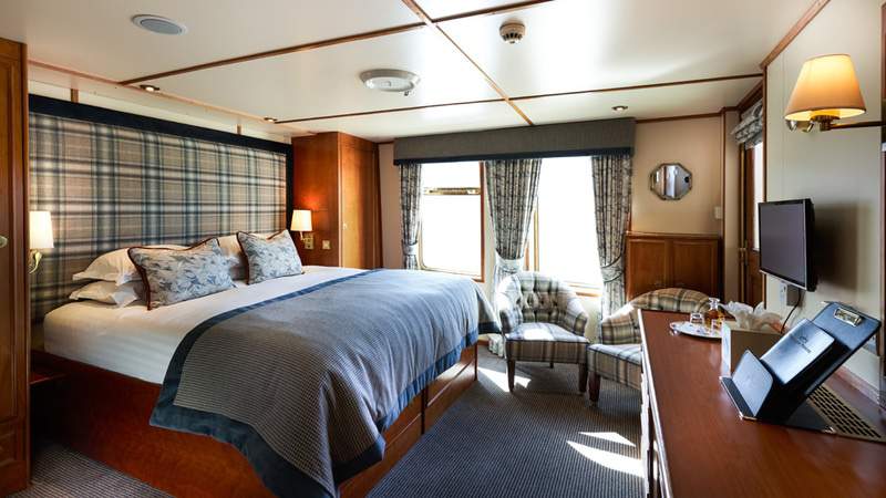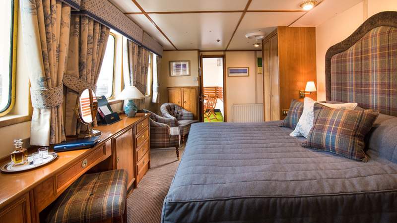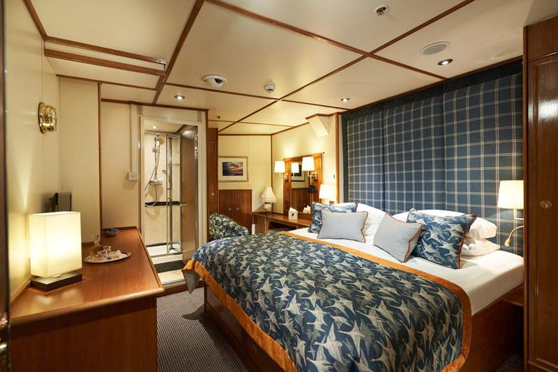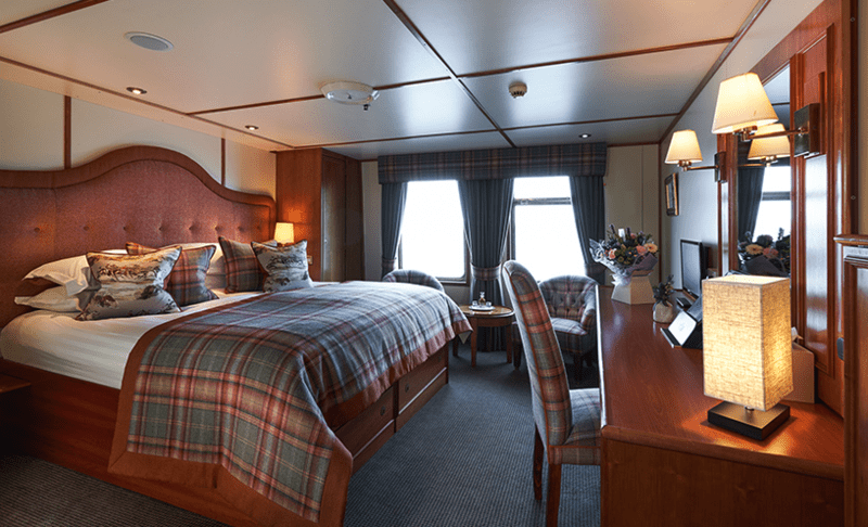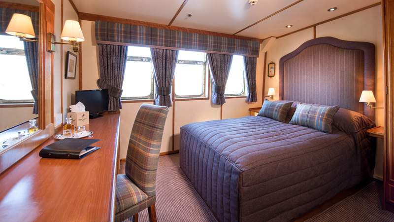 Elegantly decorated and furnished, Hebridean Princess cabins are individually designed to make the most of the available space. Poetically named after Scottish isles, castles, lochs and sounds, they are amongst the most spacious for vessels of her size.