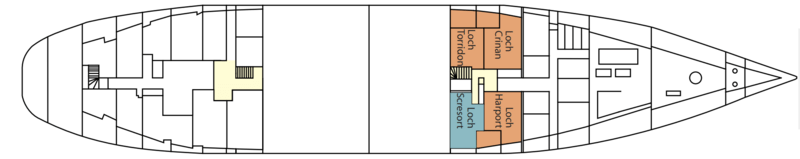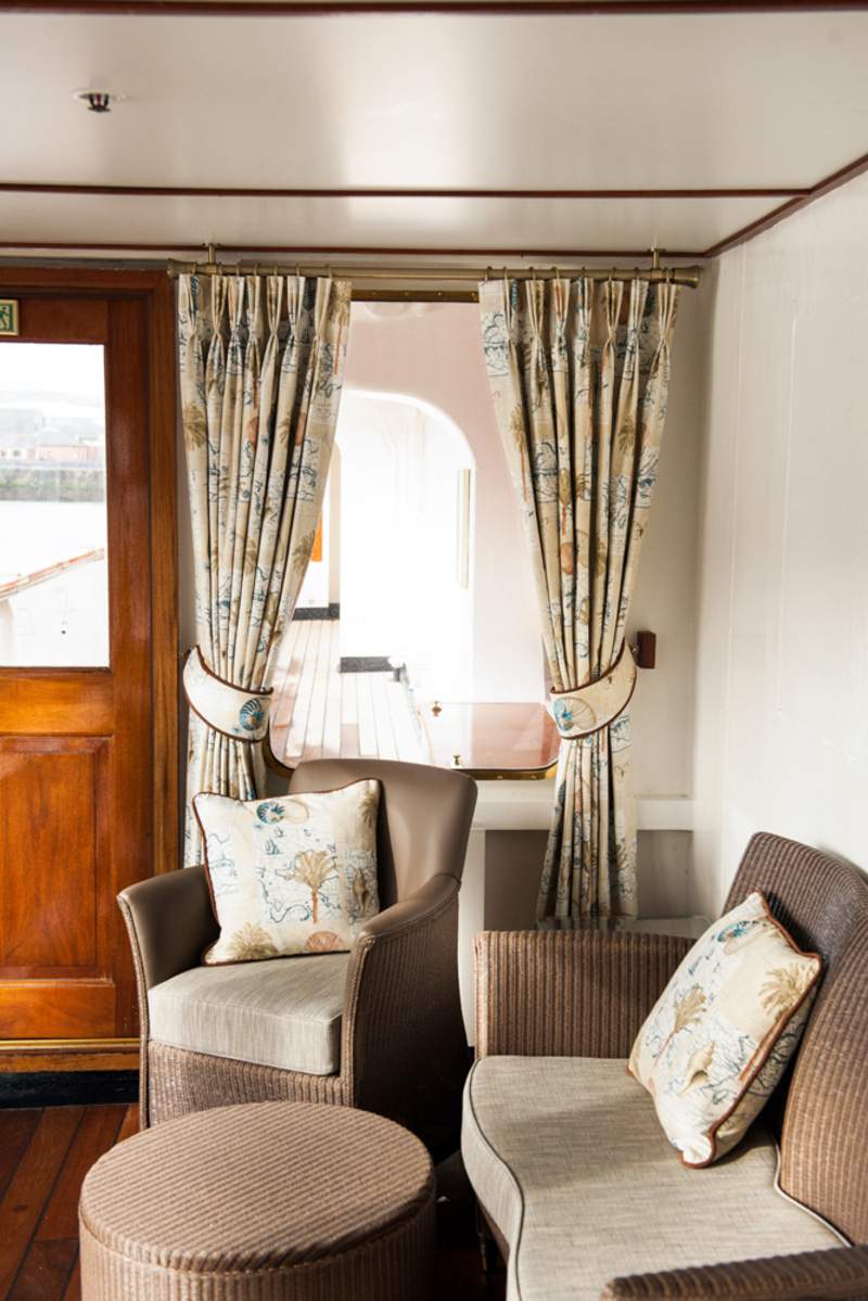 There are delightful features all over the ship, including the homely inglenook fireplace in the Tiree Lounge. Her small size ensures you will soon feel at home, and she will win a special place in your heart.