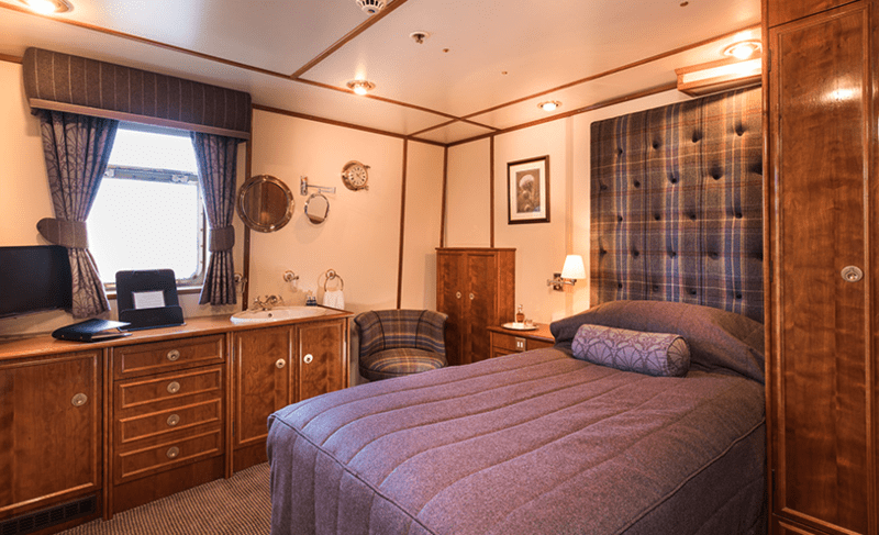 From the Tiree Lounge and Columba Restaurant to the well-polished teak deck, there’s plenty of space to relax, meet fellow guests or simply watch the world go by. There are 30 spacious, individually designed and elegantly decorated cabins. Choose from single or double cabins, all of which enjoy the same high quality of service from an experienced and professional crew.