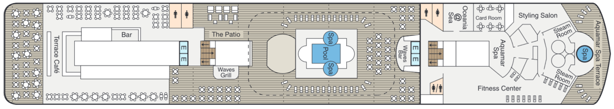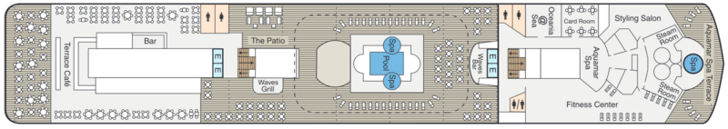 On the sparkling pool deck, take a refreshing dip in the large saltwater pool or relax in one of the two whirlpool spas. Plenty of comfortable chaise lounge chairs and luxurious day beds on the beautiful teak lido deck invite you to lounge poolside while you sip your favourite cocktail from Waves Bar.