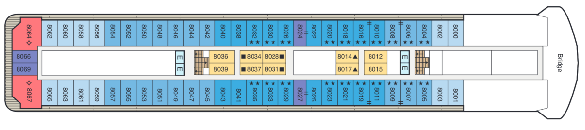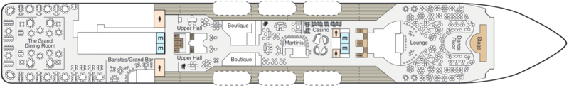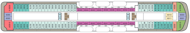 Launch year | Refit year | Language | Gross tonnage | Length | Width | Currency | Speed | Capacity | Crew count | Deck count | Cabin count | Large cabin count | Wheelchair cabin count | Electrical plugs |