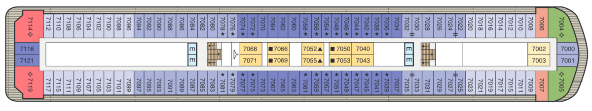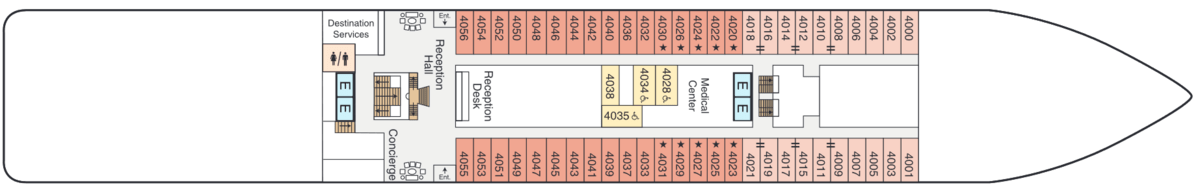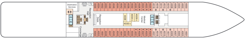 Located in some of the most desirable locations on the ship, Category A Concierge Level Veranda Staterooms offer the attractive blend of both value and luxury. These sleekly redefined 216-square-foot staterooms offer coveted amenities and exclusive privileges, such as free laundry service, that make your experience that much more carefree. Fresh new decor, sumptuous Tranquility Beds and re-inspired verandas with stylish new furniture complete the Concierge experience.