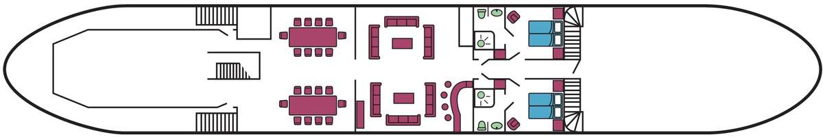 La Bella Vita is a stylish twenty-passenger vessel offering comfortable, fully air-conditioned accommodation. She has two upper deck junior suites and eight lower deck staterooms, all offering en suite facilities, and a bright, spacious dining room and bar area where delicious Italian specialities will be served. Louvre doors open to the side to give a perfect view. Above, there is a huge sun deck with comfortable loungers to relax on with a drink and a good book, or just watch the world go by.