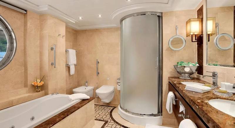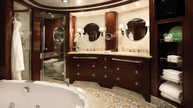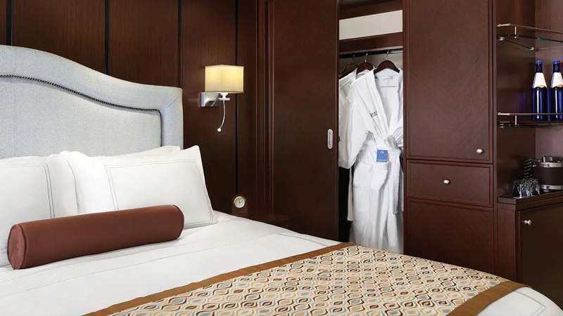 Space is perhaps the ultimate luxury, and that is something all our accommodations provide in lavish excess. Defined by their elegance, our staterooms feature tasteful furnishings and a serene ambiance. Many staterooms feature an oversized marble and granite-clad bathroom with a tub and separate shower. You will appreciate the refrigerated mini-bar, copious closet and drawer space and our revolutionary Tranquility Bed, a luxury our guests consistently describe as heavenly.