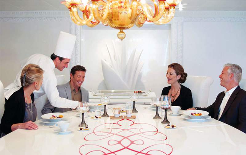 Akin to a dramatic coastal villa, the Owner’s Suites exude a sophisticated and luxurious personality. At more than 2,000 square feet, each features a living room, dining room, master bedroom and two bathrooms. These suites are adorned with designer furnishings and exquisite appointments, creating a blissful enclave at sea. There are separate terraces for the living areas and bedroom and expanses of floor-to-ceiling windows provide captivating vistas and with the stunning backdrop of the sea all around. All of our suites include exclusive 24-hour Butler service and are uncommonly spacious, further adding to the unparalleled suite experience.