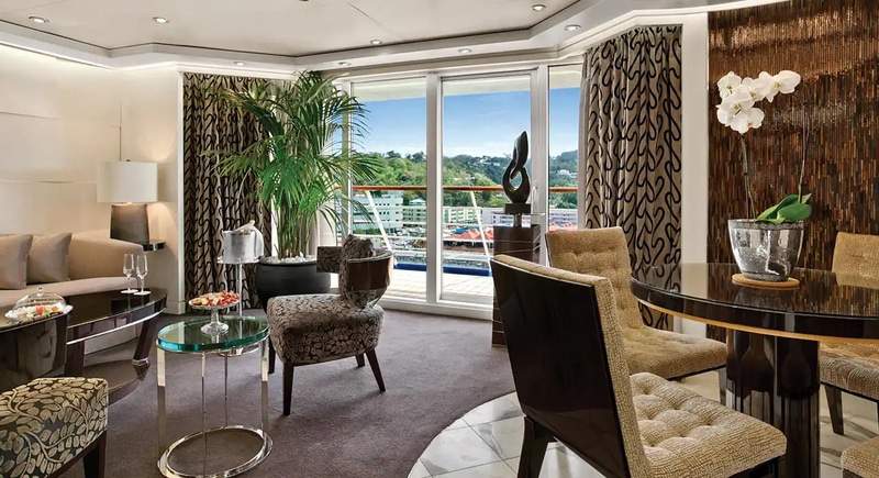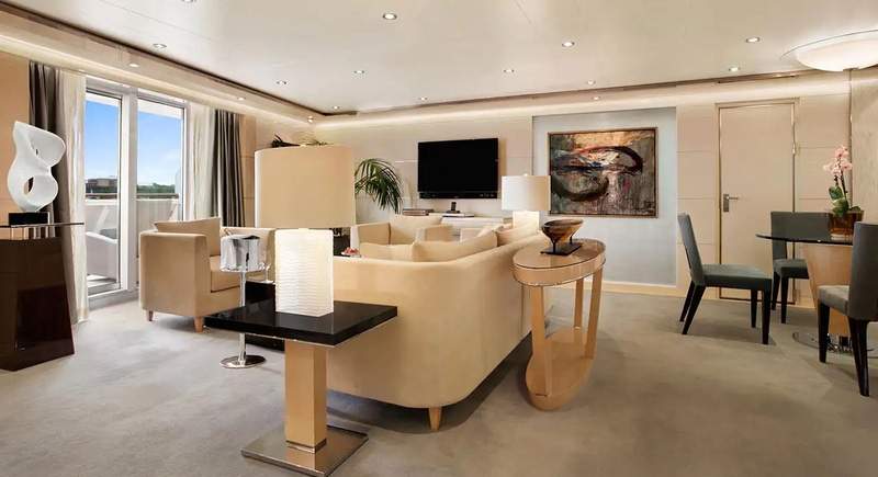 Featuring a luxurious residential design and stylish furnishings, each of the twelve Oceania Suites offers more than 1,000 square feet of luxury. These stylish suites offer a living room, dining room, fully equipped media room, large walk-in closet, king-size bed, expansive private veranda, indoor and outdoor whirlpool spas and a second bathroom for guests. Also included is access to the private Executive Lounge with magazines, daily newspapers, beverages and snacks.